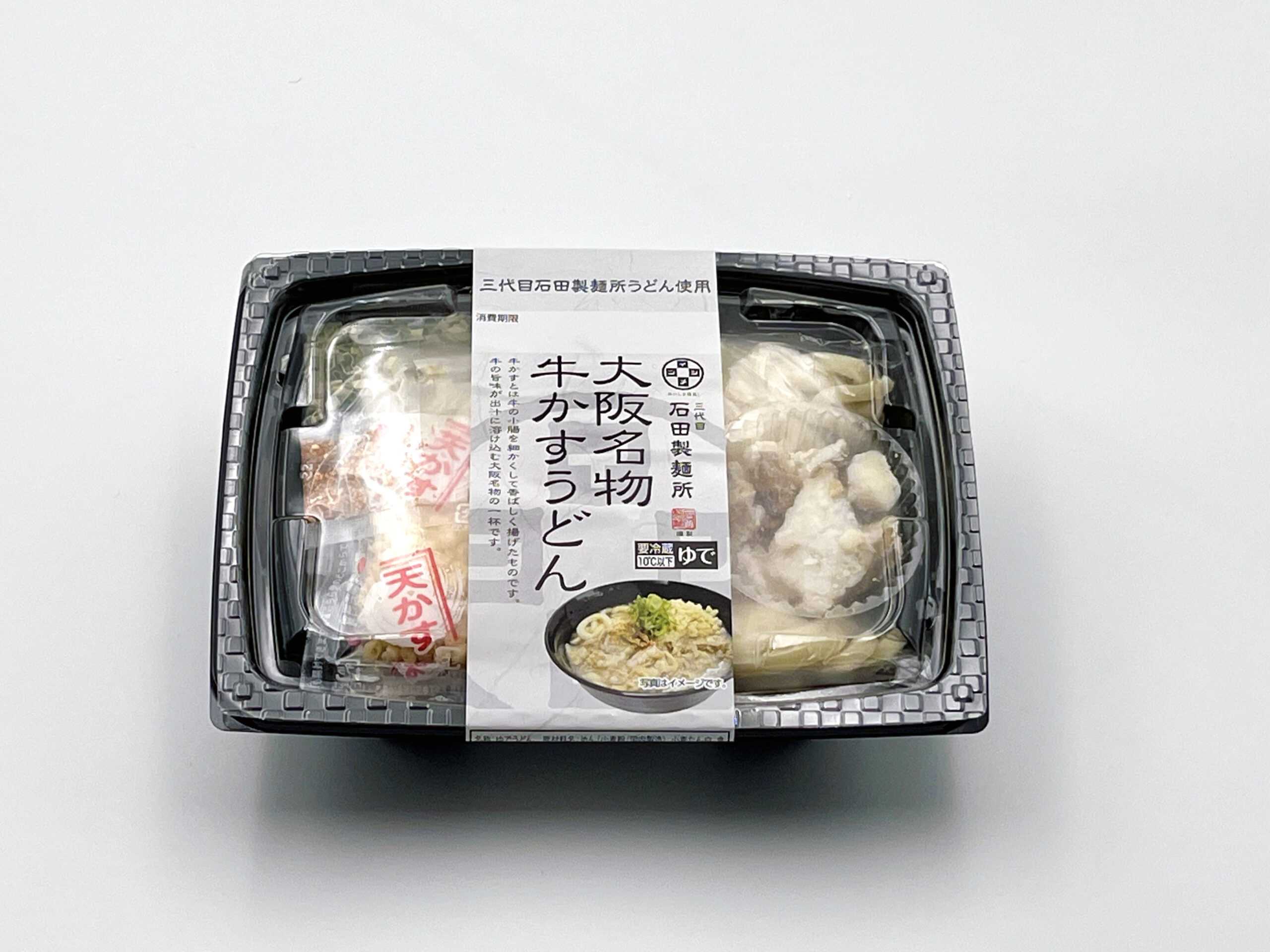 三代目石田製麺所ゆでうどんを使用した大阪名物牛かすうどんです。