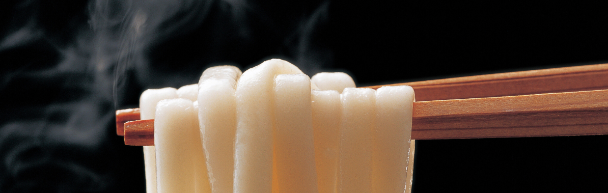 種々厳選した数種類の小麦粉を配合し、できあがったもっちり食感のめんです。