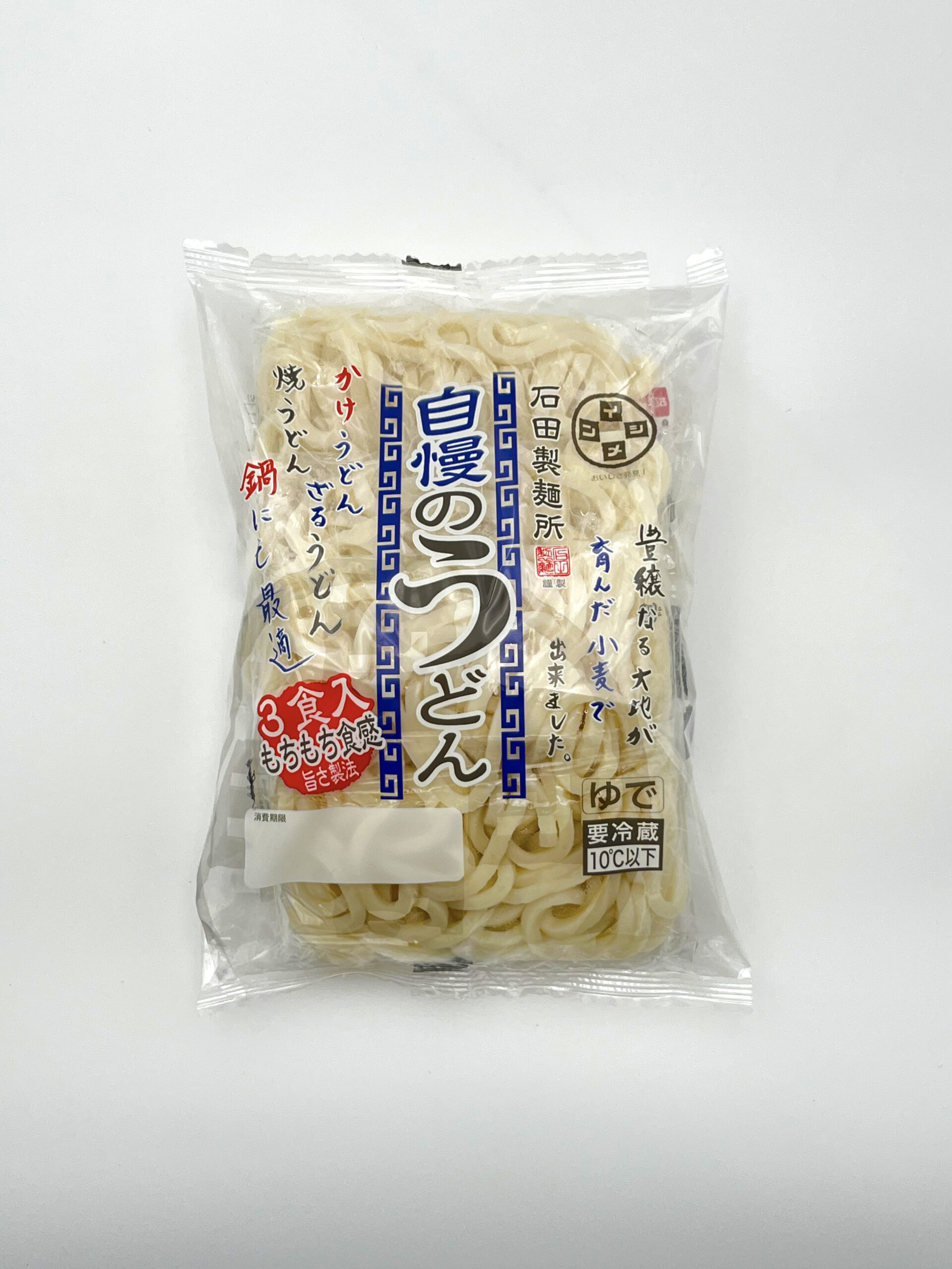 煮ても炒めてもおいしい万能うどん。三食入りで、冷蔵庫にあると安心の一品です。